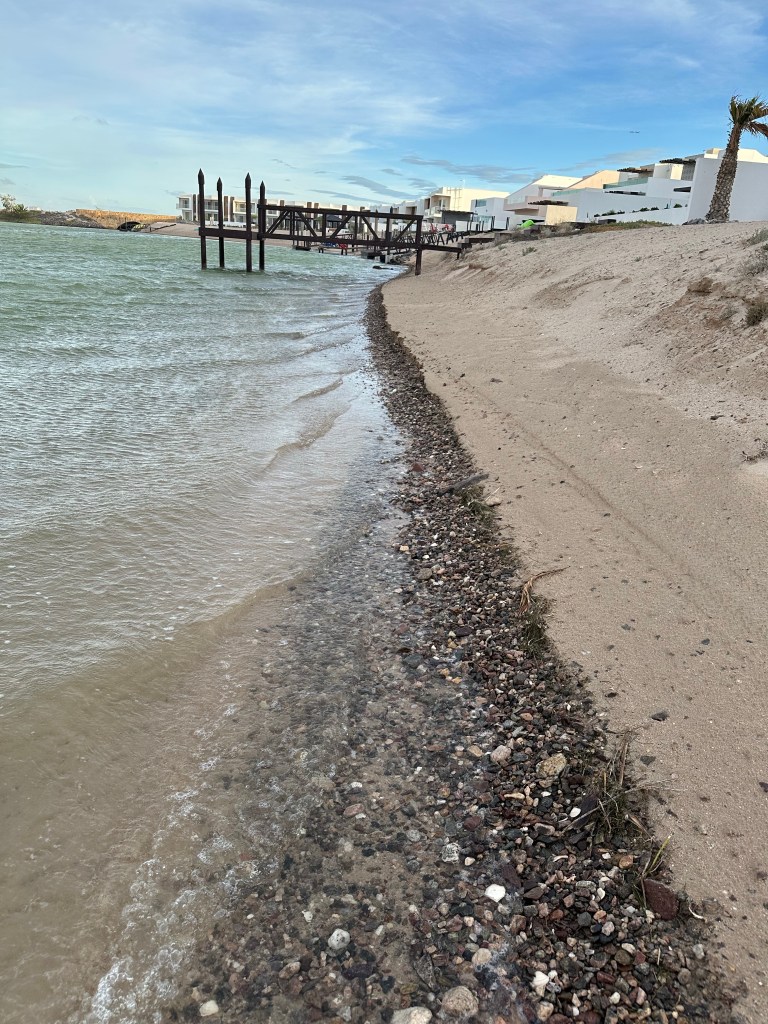 Ok, we live in the Sea of Cortez, we are on the leeward side of cholla bay. We still receive high winds and surf during storms but due to our location we are protected and get much less than areas south of us. Islas Del Mar the neighborhood we live in contains the largest ecological certified beach in northern Mexico. The community also contains a large salt water marsh estuary, breeding areas for Herons and several breeding Osprey pairs.