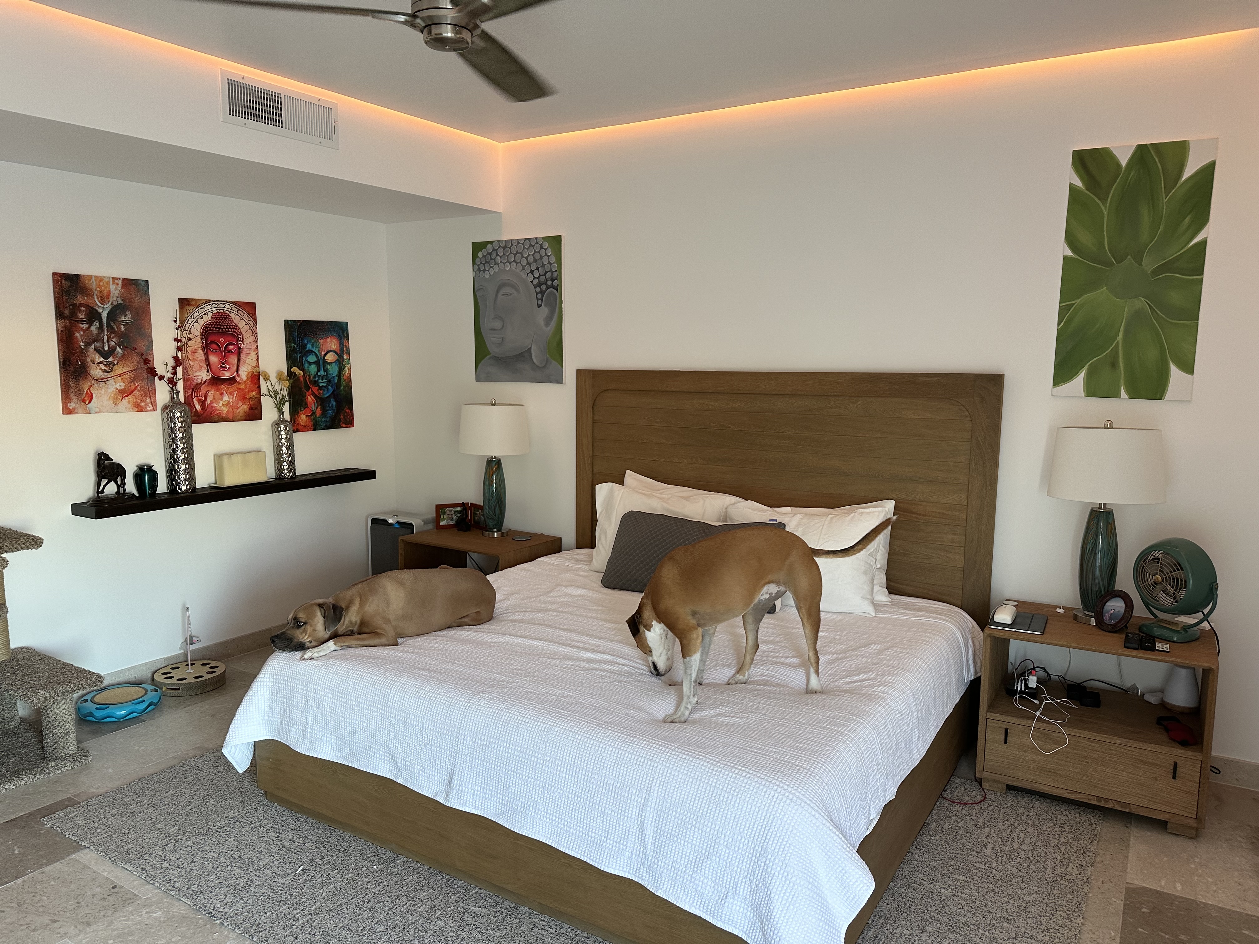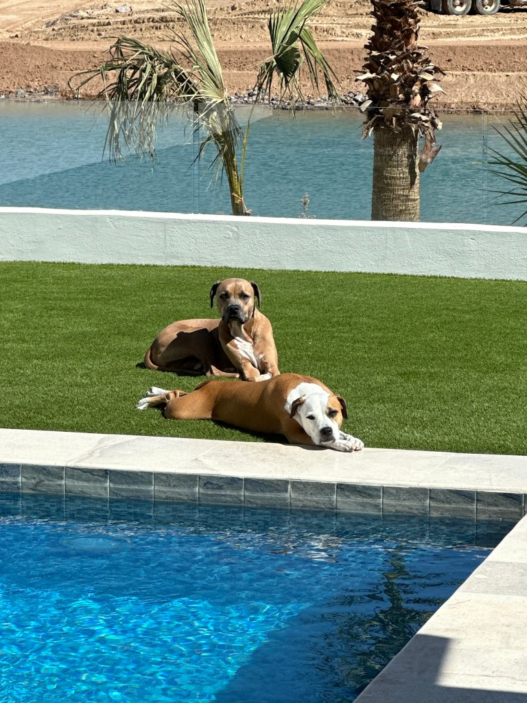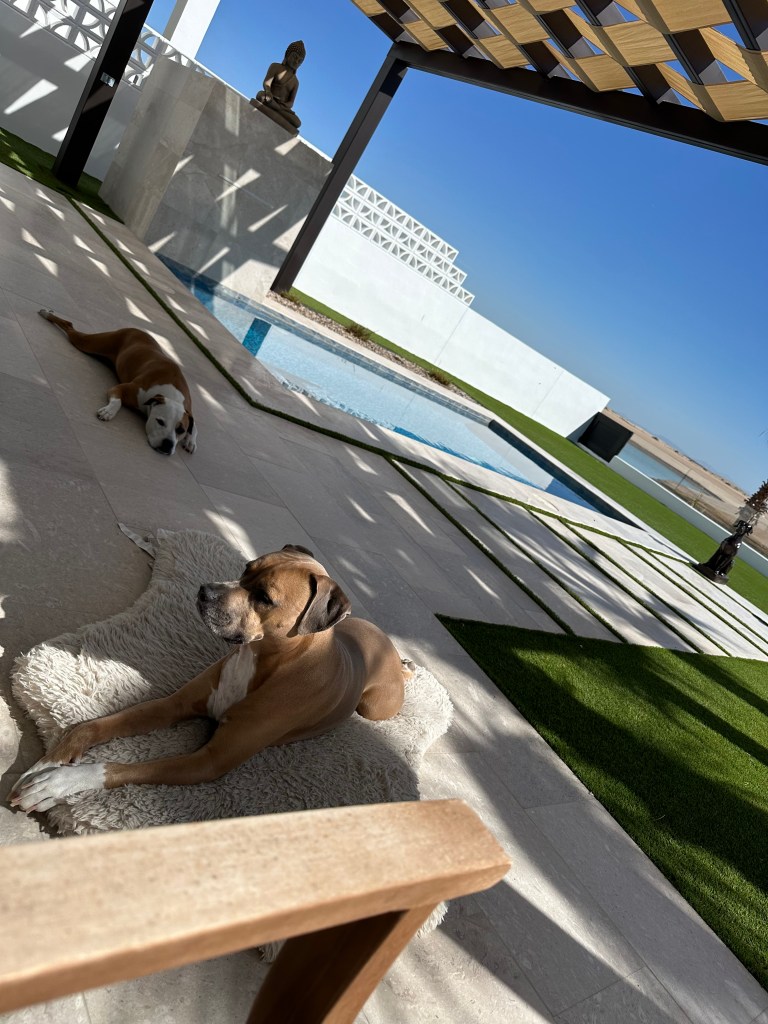 The dogs are doing great they love it here, walked on the beach in the mornings, and sleepy days by the pool in the afternoon when its not to hot! The vet here is amazing really never thought we would find another vet like our long time vet and friend Jameson, we spent years visiting vet after vet and just hating each experience. Found a vet here they spend no less than 1 hour with you each visit talking about the dogs and playing with them, examining them. The experience is so refreshing and I feel like we are so lucky to have found them. They are also very heavily involved with the local rescue wish is essential to the town in helping with all the stray and uncared for animals.